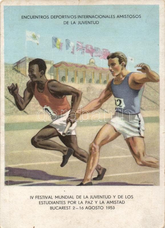 1953 IV. Festival Mundial de la Juventud y de los Estudiantes por la p... https://www.darabanth.com/de/210-Fernauktion/210.0/Ansichtskarten/Sport~81/1953-IV-Festival-Mundial-de-la-Juventud-y-de-los-Estudiantes-por-la-paz-y-la-Amistad-Bucarest-Wo~II866376