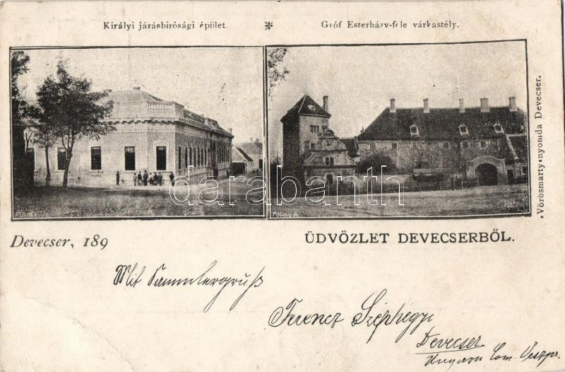 1899 Devecser, Királyi Járásbírósági épület, Gróf Esterházy várkastély... https://www.darabanth.com/de/210-Fernauktion/210.0/Ansichtskarten/Ungarn~5/1899-Devecser-Kiralyi-Jarasbirosagi-epulet-Grof-Esterhazy-varkastely-EB~II862067