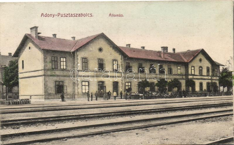 Adony-Pusztaszabolcs, vasútállomás, hátoldalon Rajcsányi Mihály vasúti... https://www.darabanth.com/de/210-Fernauktion/210.0/Ansichtskarten/Ungarn~5/Adony-Pusztaszabolcs-vasutallomas-hatoldalon-Rajcsanyi-Mihaly-vasuti-vendeglos-reklam-C3~II864986