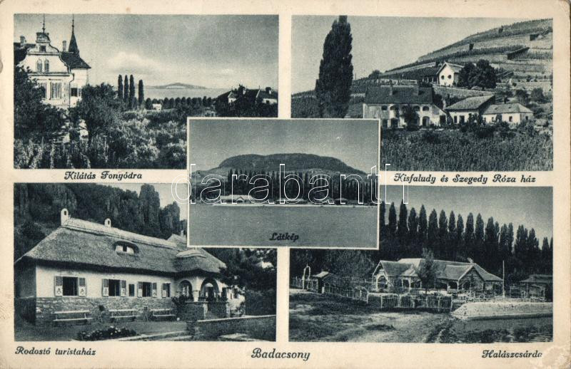 Badacsony, Halászcsárda, Rodostó turistaház, Kisfaludy- és Szegedy Róz... https://www.darabanth.com/de/210-Fernauktion/210.0/Ansichtskarten/Ungarn~5/Badacsony-Halaszcsarda-Rodosto-turistahaz-Kisfaludy-es-Szegedy-Roza-haz~II866564