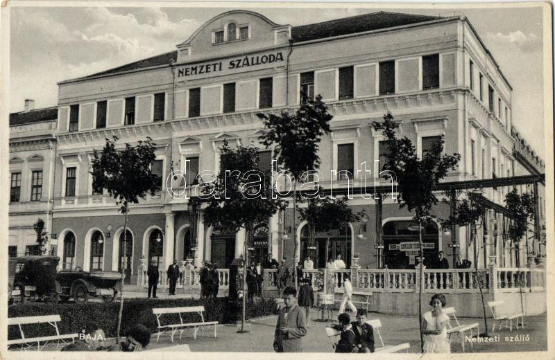 Baja, Nemzeti szálloda és kávéház (ragasztónyom / gluemark) https://www.darabanth.com/de/210-Fernauktion/210.0/Ansichtskarten/Ungarn~5/Baja-Nemzeti-szalloda-es-kavehaz-ragasztonyom-gluemark~II866181