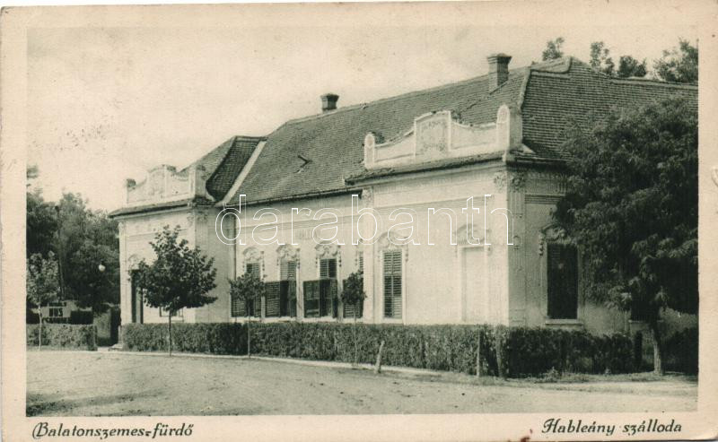 Beschreibung: Balatonszemes fürdő, Hableány szálloda, Dobránszky testvérek kiadása (kis szakadás / small tear)