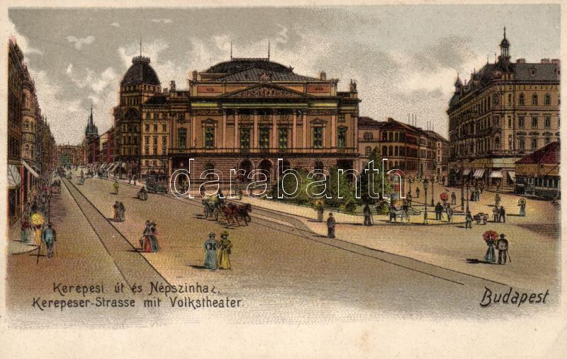 Budapest VIII. Kerepesi út és Népszínház litho (EK) https://www.darabanth.com/de/210-Fernauktion/210.0/Ansichtskarten/Ungarn~5/Budapest-VIII-Kerepesi-ut-es-Nepszinhaz-litho-EK~II862989
