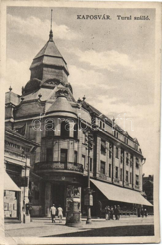 Beschreibung: Kaposvár, Turul szálló, Fenyvesi Béla könyvkereskedése, Kisgazda bolt (EK)