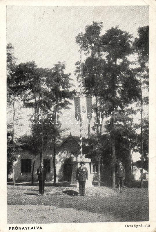 Prónayfalva, Tázlár; Országzászló, Népház (EK) https://www.darabanth.com/de/210-Fernauktion/210.0/Ansichtskarten/Ungarn~5/Pronayfalva-Tazlar-Orszagzaszlo-Nephaz-EK~II862764
