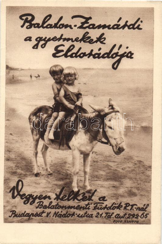 Zamárdi, a gyermekek Eldorádója, reklám (fa) https://www.darabanth.com/de/210-Fernauktion/210.0/Ansichtskarten/Ungarn~5/Zamardi-a-gyermekek-Eldoradoja-reklam-fa~II863765