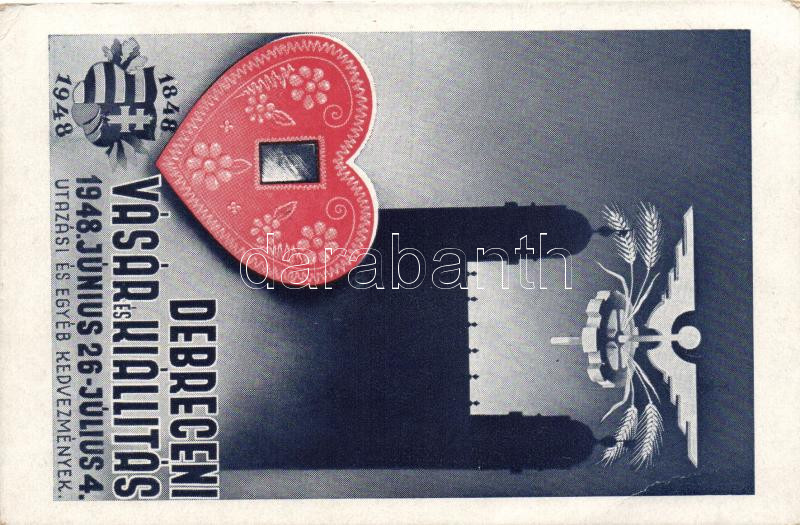 Beschreibung: 1948 Debreceni Vásár és kiállítás / Fair and exhibition, coat of arm, church So. Stpl (EB)