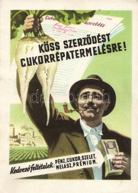 Köss szerződést cukorrépa termelésre! / advertisement of Sugar beet's ... https://www.darabanth.com/de/210-Fernauktion/210.0/Ansichtskarten/Werbungen~75/Koss-szerzodest-cukorrepa-termelesre-advertisement-of-Sugar-beets-production~II862646
