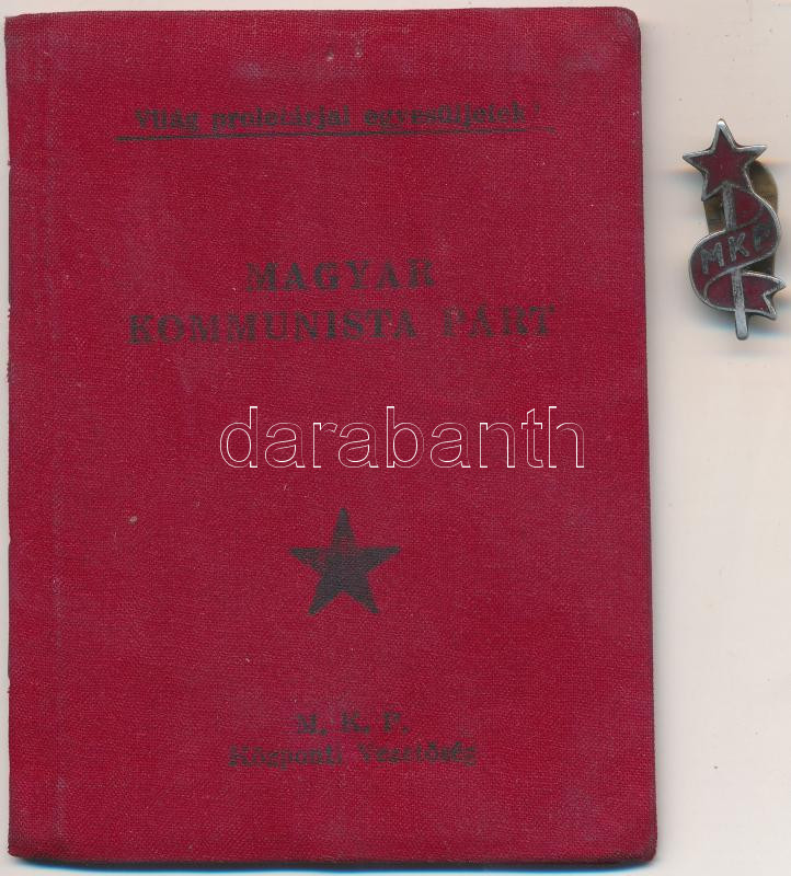 Beschreibung: 1945. "Magyar Kommunista Párt" gomblyuk jelvénye és tagsági könyve T:2