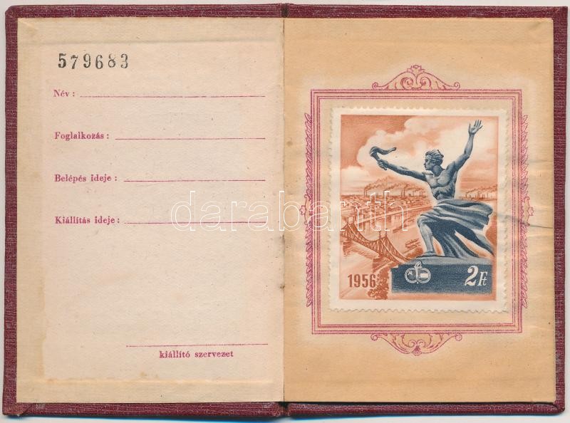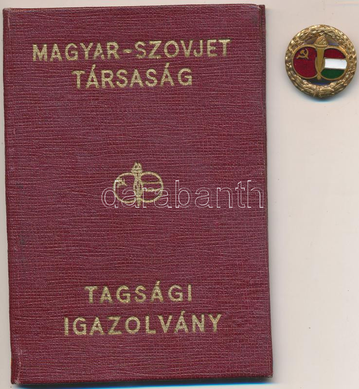 1956. "Magyar-Szovjet Társaság" zománcozott jelvénye és tagsági igazol... https://www.darabanth.com/de/210-Fernauktion/210.0/Numismatik/Faleristik-Auszeichnungen-Medaillen-Ordnen~108/1956-Magyar-Szovjet-Tarsasag-zomancozott-jelvenye-es-tagsagi-igazolvanya-T2~II863025