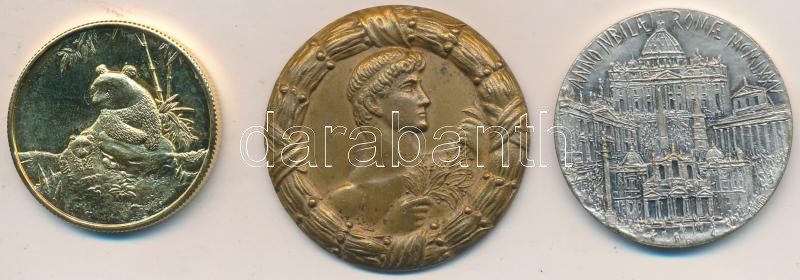 Beschreibung: DN Br díjérem. Szign.: Ludvig (38mm) + Kína DN "Panda" aranyozott Br emlékérem (30mm) + Olaszország 1975. "Róma Anno" ezüstözött Br emlékérem (34mm) T:PP,2