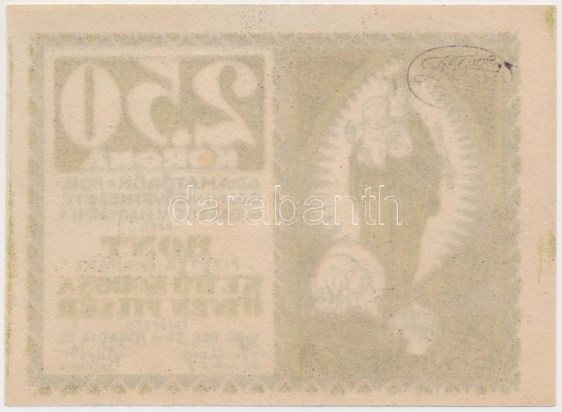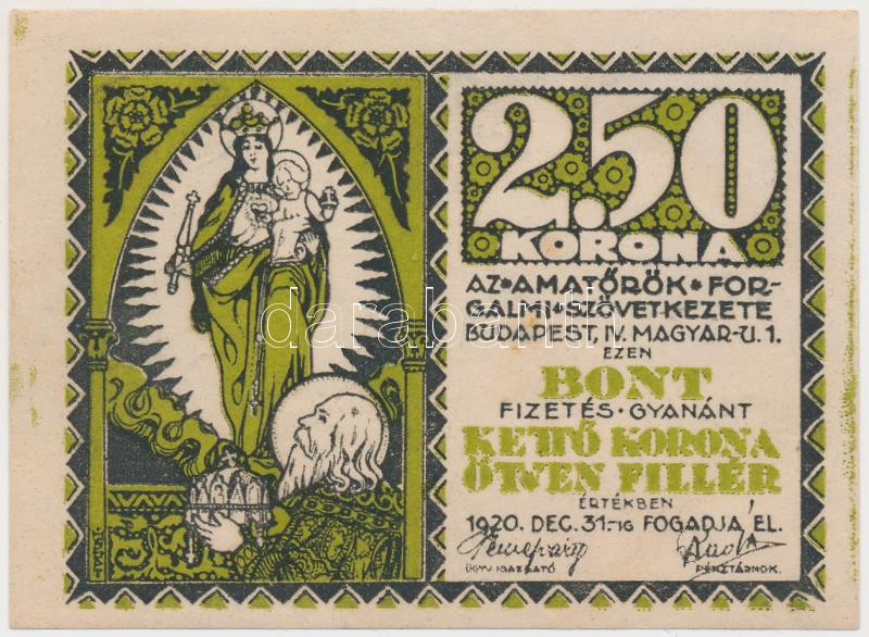 Budapest 1920.12.31. "Amatőrök Forgalmi Szövetkezete" 2,5K ovális bély... https://www.darabanth.com/de/210-Fernauktion/210.0/Numismatik/Notgelden~98/Budapest-19201231-Amatorok-Forgalmi-Szovetkezete-2-5K-ovalis-belyegzo-a-hatlapon-TI-~II865044
