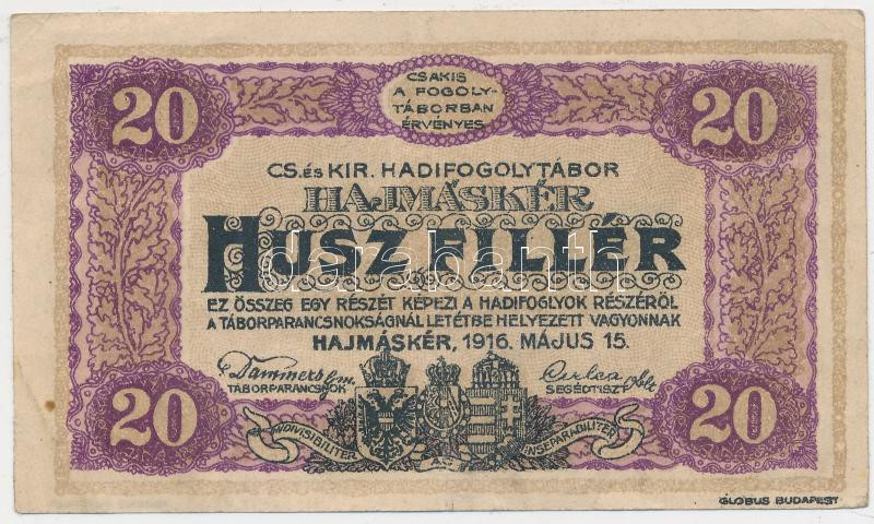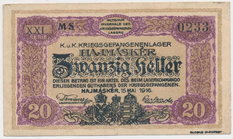 Hajmáskér/hadifogolytábor 1916. 20f római sorozat és arab sorszámozás ... https://www.darabanth.com/de/210-Fernauktion/210.0/Numismatik/Notgelden~98/Hajmaskerhadifogolytabor-1916-20f-romai-sorozat-es-arab-sorszamozas-MS-jelzessel-TIII~II866897