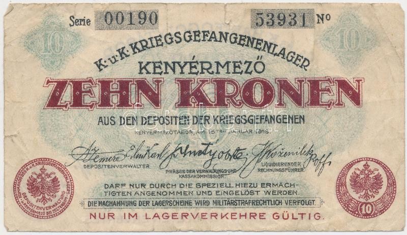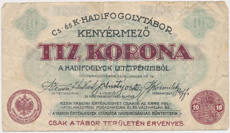 Kenyérmező/hadifogolytábor 1916. január 15. 10K arab sorozat-és sorszá... https://www.darabanth.com/de/210-Fernauktion/210.0/Numismatik/Notgelden~98/Kenyermezohadifogolytabor-1916-januar-15-10K-arab-sorozat-es-sorszammal-TIII-III-~II866907