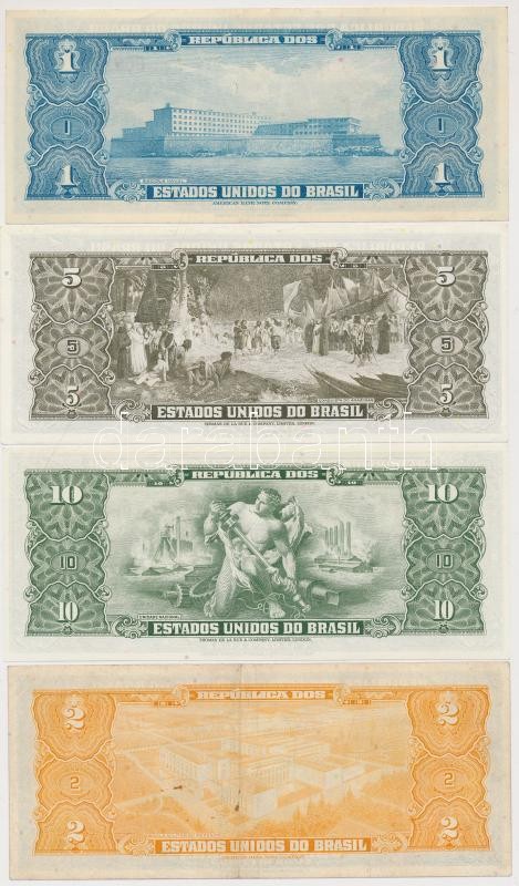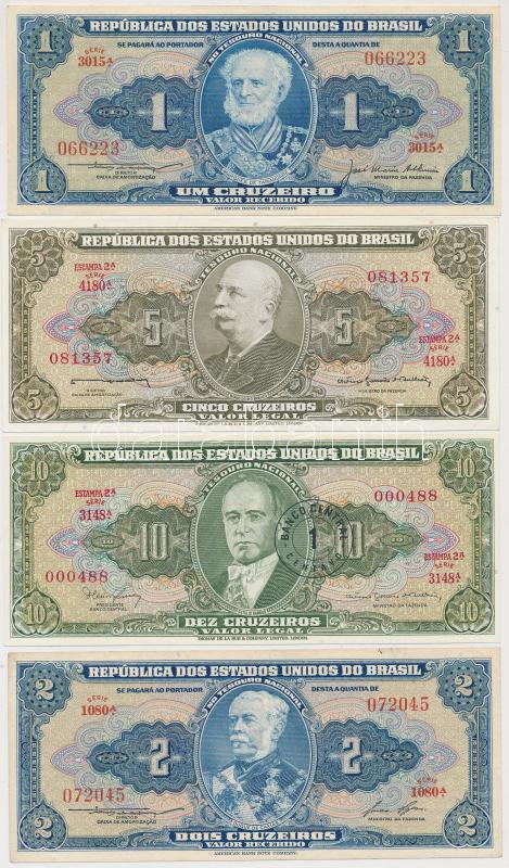 Brazil 1954-1958. 1 Cruzeiro + 2 Cruzeiros + 1964. 5 Cruzeiros + 1966. 10 Cruzeiros C:UNC,AU,F