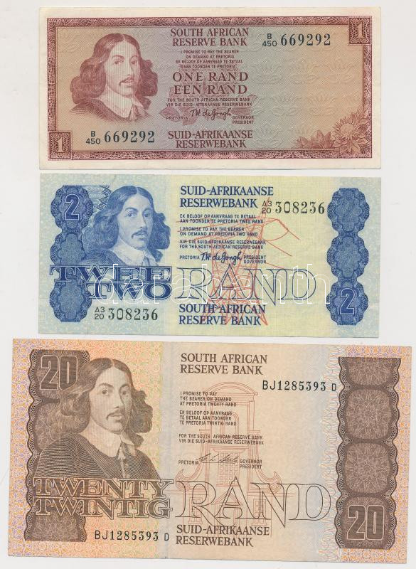 South Africa 1975. 1 Rand + 1978-1981. 2 Rand + 1990-1993. 20 Rand C:VF,F