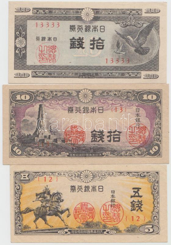 Japan 1944. 5 Sen + 10 Sen +... https://www.darabanth.com/de/210-Fernauktion/210.0/Numismatik/Weltweit-Banknoten~103/Japan-1944-5S-plus-10S-plus-1947-10S-TII-III-3Cbr3EJapan-1944-5-Sen-plus-10-Sen-plus-1947-10-Sen-CXF-F~II865976
