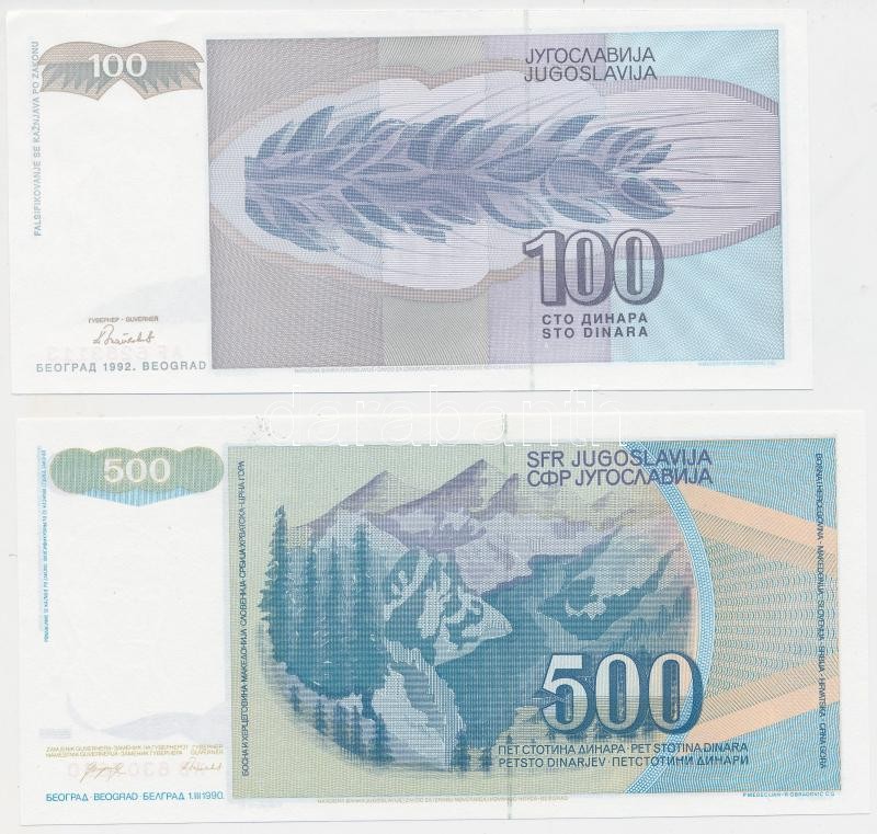 Jugoszlávia 1990-1992. 100D + 500D T:I-