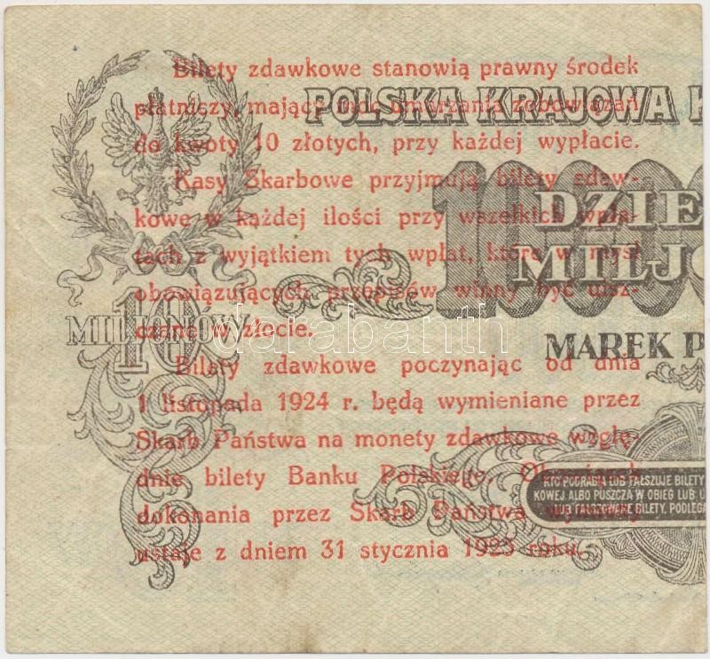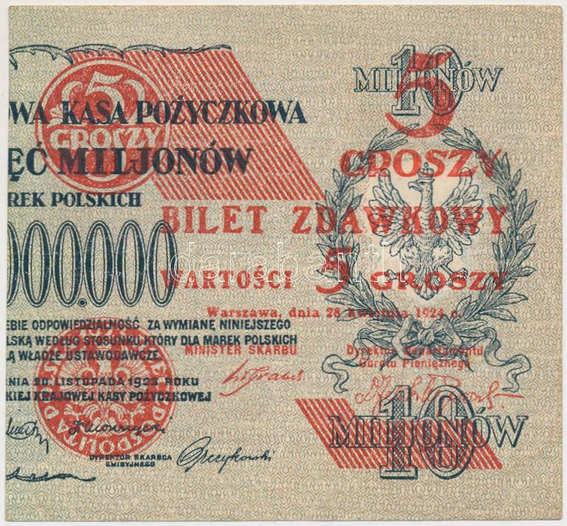 Lengyelország /Pénzügyminisztériumi kiadás 1924. 5Gr felülnyomás kettévágott 10.000.000Zl bankjegy jobb felén T:III