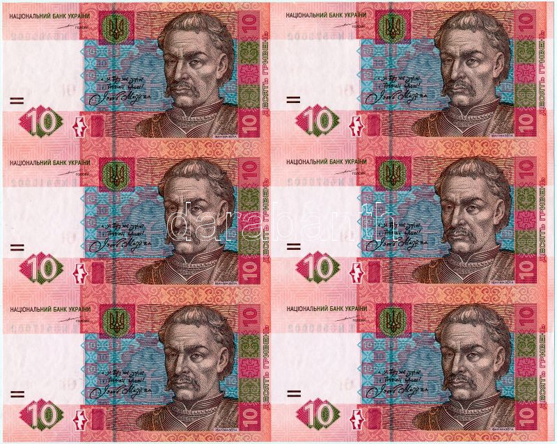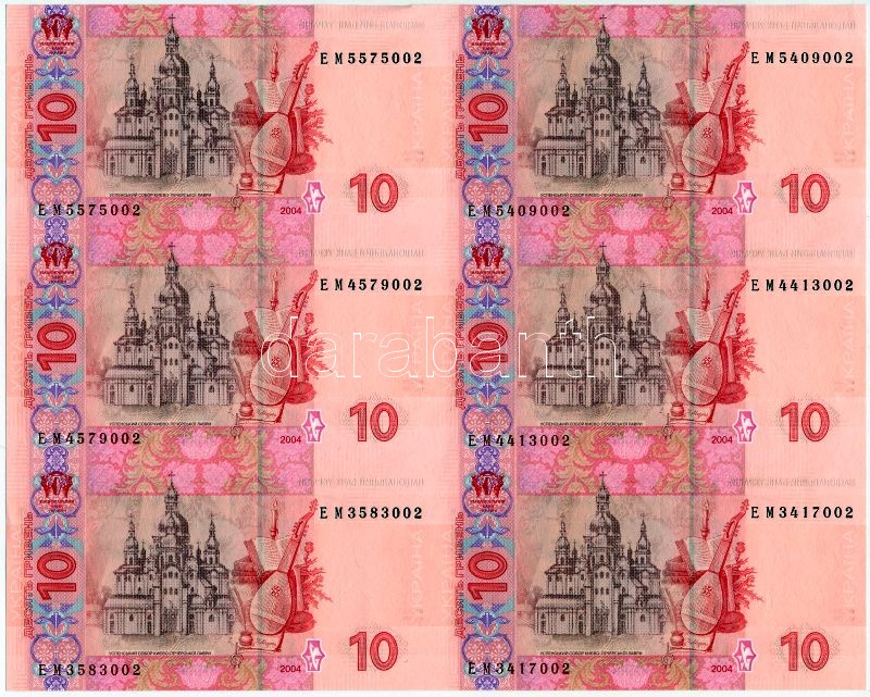 Ukraine 2004. 10 Hryven uncu... https://www.darabanth.com/de/210-Fernauktion/210.0/Numismatik/Weltweit-Banknoten~103/Ukrajna-2004-10H-egybefuggo-6-os-iv-TI--3Cbr3EUkraine-2004-10-Hryven-uncut-sheet-of-6-CAU-3Cbr~II835570