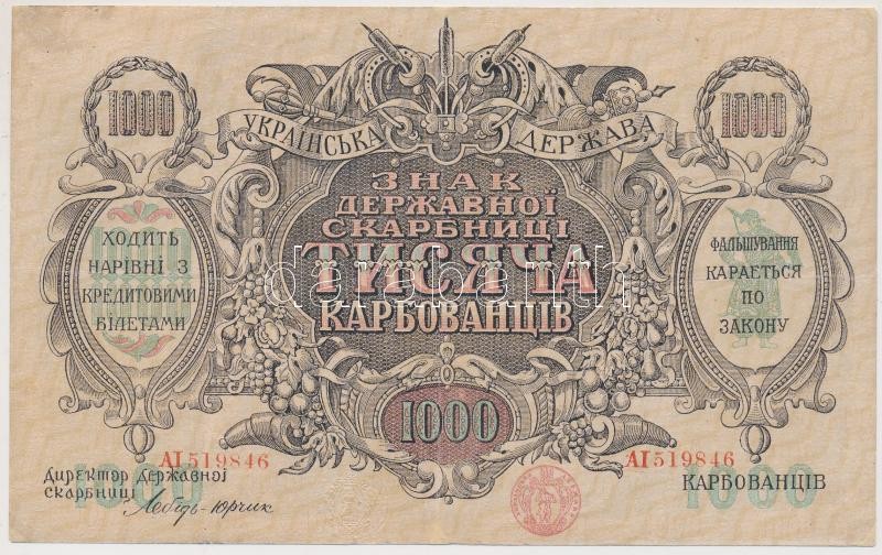 U... https://www.darabanth.com/de/210-Fernauktion/210.0/Numismatik/Weltweit-Banknoten~103/UkrajnaAutonom-KoztarsasagAllamkincstari-kiadas-1918-1000K-TIII--3Cbr3EUkraineAutonomous-~II866258