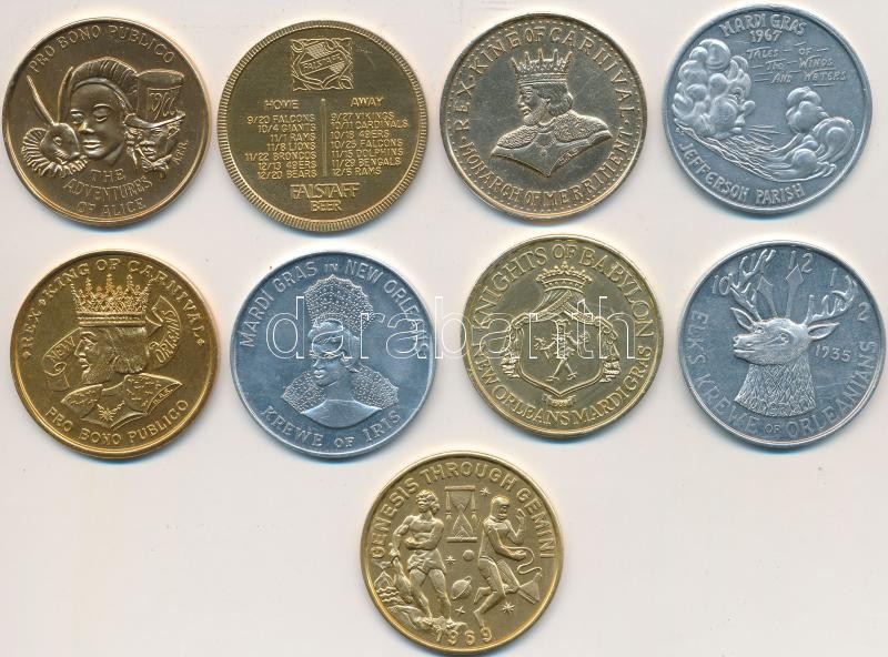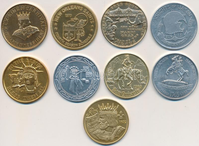 USA 1965-1970. "New Orleans" 9pcs of gold and silver plated Al medallions C:UNC,XF
