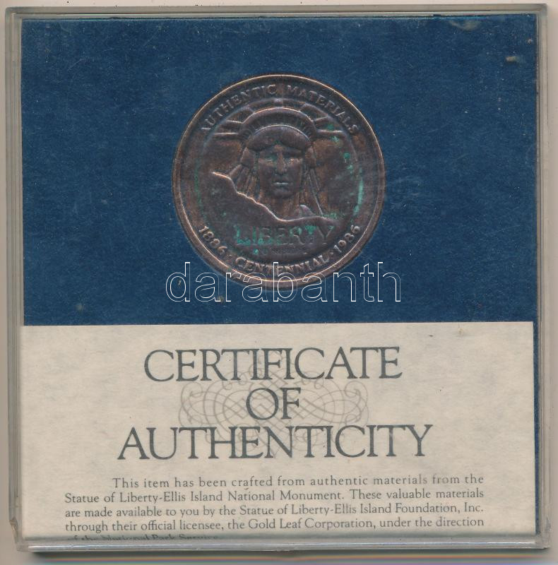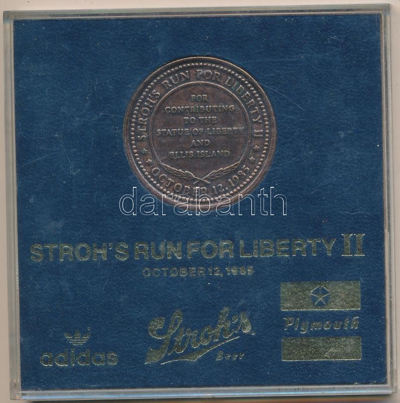 Amerikai Egyesült Államok 1985. "Stroh futása a Szabadság-szoborért II" Br emlékérem a Szabadság-szobor eredeti anyagából készítve, tanúsítvánnyal dísztokban T:1