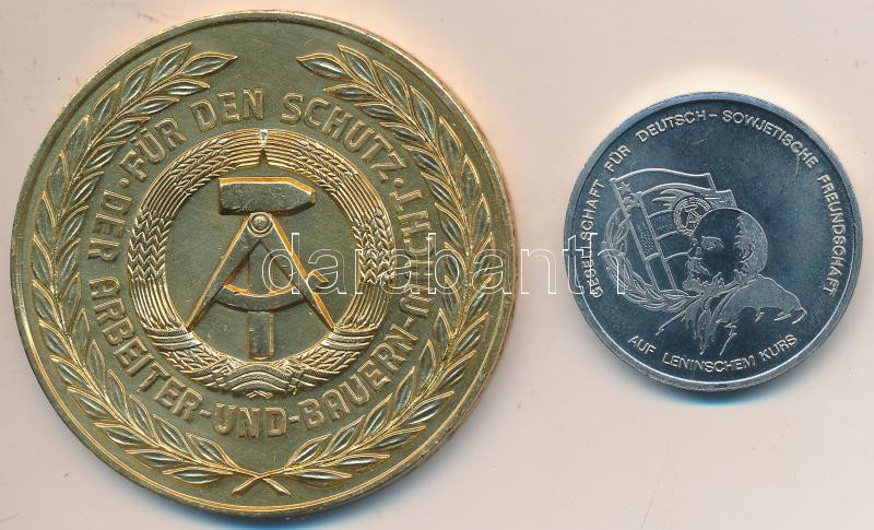 Beschreibung: NDK 1961. "Berlin" aranyozott Br emlékérem (60mm) + DN "Német-Szovjet Barátság - Quedlinburg" fém emlékérem (35,5mm) T:1-