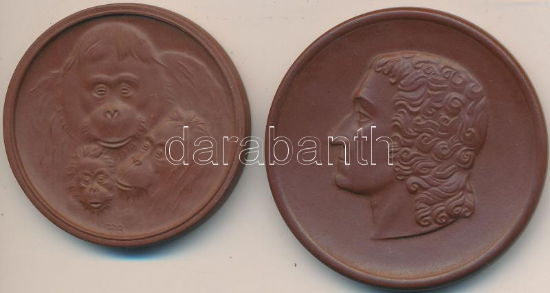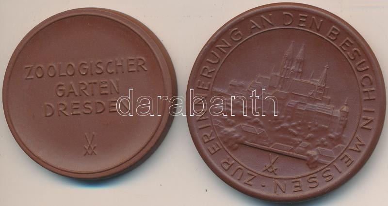 Beschreibung: Németország DN "Meissen" porcelán emlékérem (53mm) + DN "Drezda Állatkert" porcelán emlékérem. Szign: FB (45mm) T:1