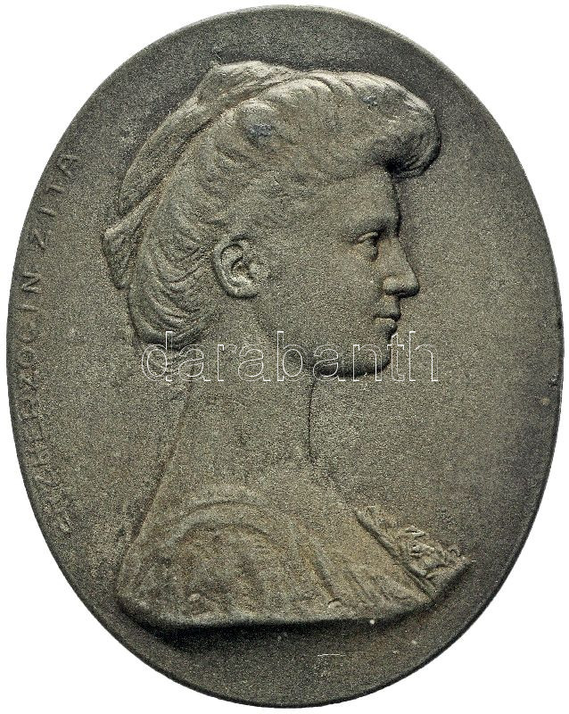 Osztrák-Magyar Monarchia 1914. "Zita hercegnő" egyoldalas ovális hadifém emlékérem. "ERZHERZOGIN ZITA" Rudolf Marschall professzor műve (58.47g/48x60mm) T:2-