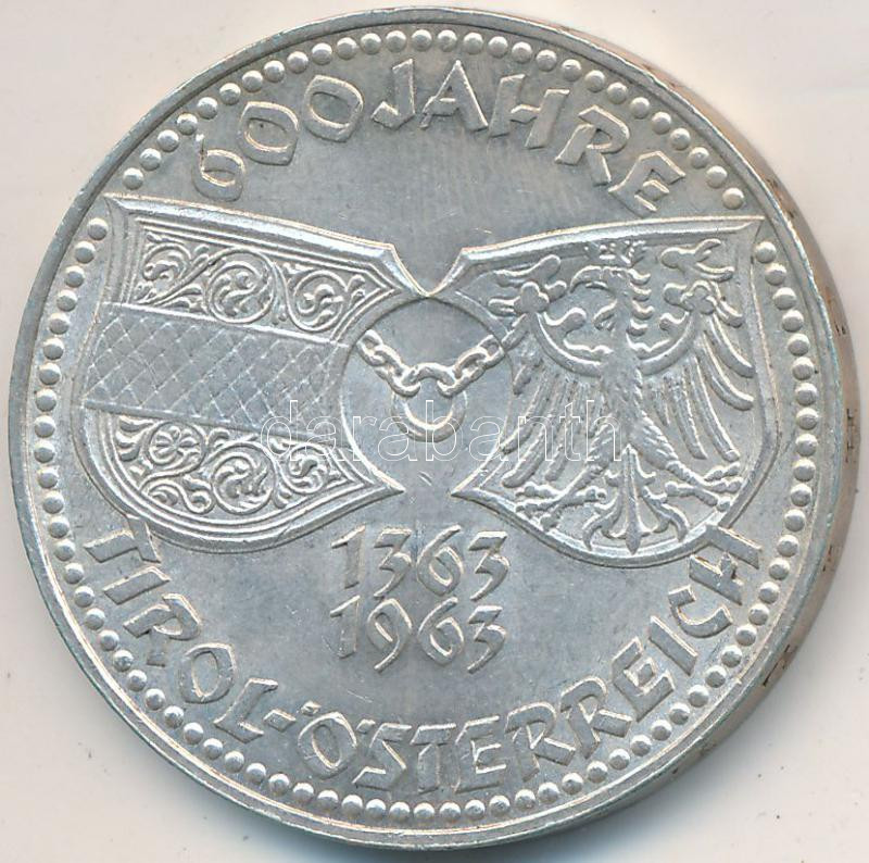 Aust... https://www.darabanth.com/de/210-Fernauktion/210.0/Numismatik/Weltweit-Munzen~104/Ausztria-1963-50Sch-Ag-Tirol-600-eve-egyesult-Ausztriaval-T2--3Cbr3EAustria-1963-50-Schilling~II865744