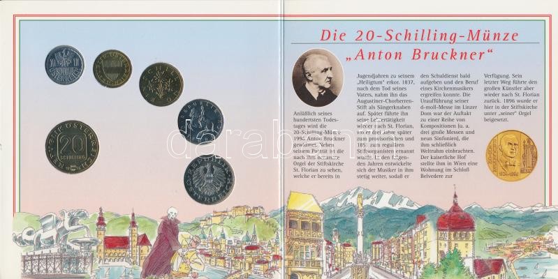 Ausztria 1996. 10Gr-20Sch "Anton Bruckner" 6db-os forgalmi sor eredeti dísztokban T:BU