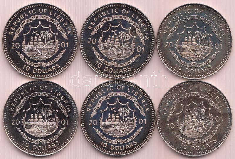Beschreibung: Libéria 2001. 10$ "Szabadság pillanatai" multicolor emlékpénz sorozat 6db-ja T:PP