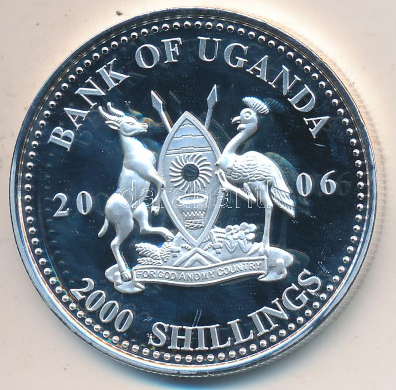 Uganda 2006. 2000Sh Ag "A labdarúgás halhatatlanjainak csarnoka - Anglia 1960-as évek / Jackie Charlton" T:PP tanúsítvánnyal