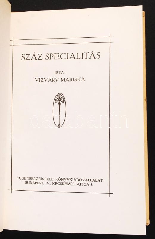 Vizváry Mariska: Száz specialitás. Bp., Eggenberger-féle Könyvkiadóvál... https://www.darabanth.com/de/211-Fernauktion/211.0/Andere-Sammelgebiete/Bucher-Kuche-und-Garten~400337/Vizvary-Mariska-Szaz-specialitas-Bp-Eggenberger-fele-Konyvkiadovallalat-Kiadoi-kartona~II870841
