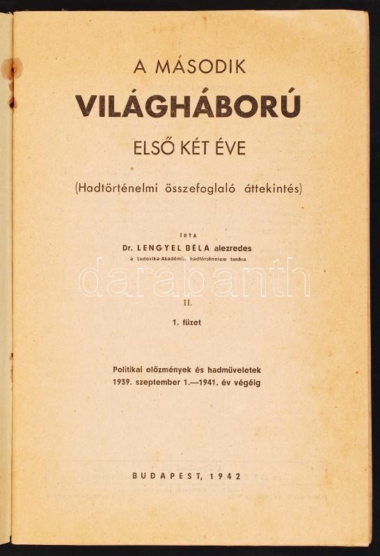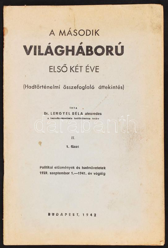Lengyel Béla: A második világháború első két éve I. füzet. Bp., 1942. ... https://www.darabanth.com/de/211-Fernauktion/211.0/Andere-Sammelgebiete/Bucher-Militaria~400334/Lengyel-Bela-A-masodik-vilaghaboru-elso-ket-eve-I-fuzet-Bp-1942-64p-sok-terkeppel~II860864
