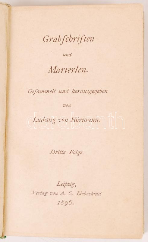 Ludwig von Hörmann,:Grabschriften und Marterlen. Gesammelt und herausg... https://www.darabanth.com/de/211-Fernauktion/211.0/Andere-Sammelgebiete/Bucher-Minibucher~400341/Ludwig-von-Hormann-Grabschriften-und-Marterlen-Gesammelt-und-herausgegeben-von-Ludwig-von-Horman~II820311