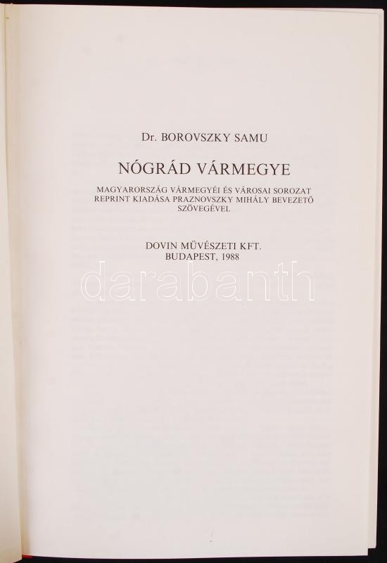 Dr. Borovszky Samu: Nógrád vármegye. Magyarország vármegyéi és városai sorozat reprint kiadása Praznovszky Mihály bevezető szövegével. Bp., 1988, Dovin Művészeti Kft. Kiadói aranyozott egészvászon kötés, védőborítóval, benne Ex libris, jó állapotban.