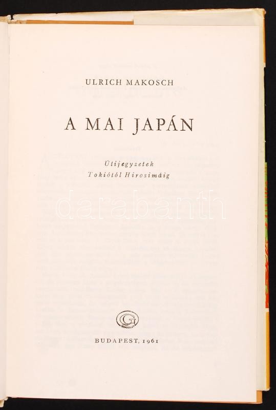 Makosch, Ulrich: A mai Japán, Útijegyzetek Tokiótól Hirosimáig. Bp., 1... https://www.darabanth.com/de/211-Fernauktion/211.0/Andere-Sammelgebiete/Bucher-Reisen-Stadte~400331/Makosch-Ulrich-A-mai-Japan-Utijegyzetek-Tokiotol-Hirosimaig-Bp-1961-Gondolat-Kiadoi-ka~II870845