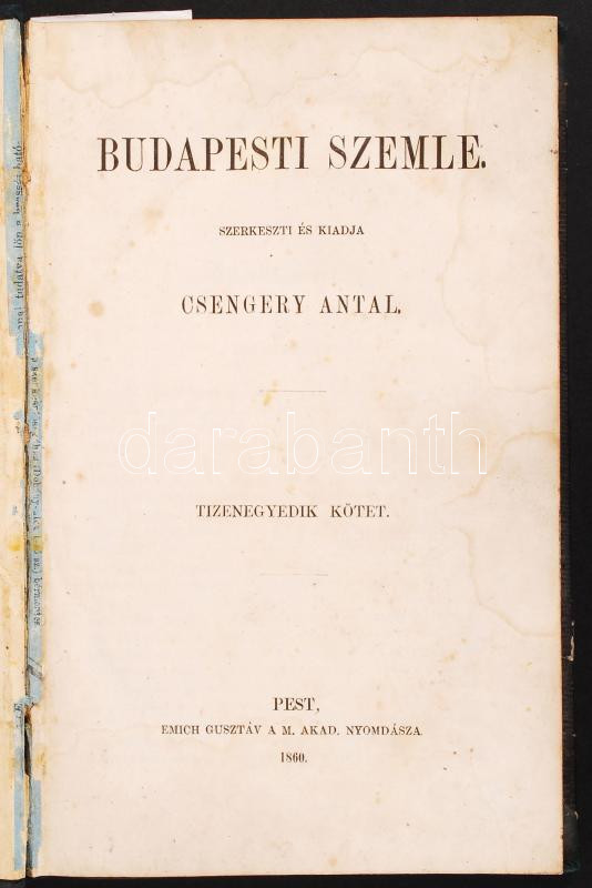 1860 Budapesti Szemle, szerkeszti és kiadja Csengery Antal, XIV. kötet, benne Hunfalvy János, Gyulai Pál írásaival, és Gróf Széchenyi István emlékezete című cikkel