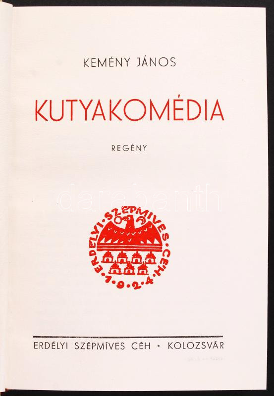 Kemény János: Kutyakomédia. Kolozsvár, Erdélyi Szépmíves Céh. Kiadói e... https://www.darabanth.com/de/211-Fernauktion/211.0/Andere-Sammelgebiete/Bucher-Sonstige-Raritaten~400344/Kemeny-Janos-Kutyakomedia-Kolozsvar-Erdelyi-Szepmives-Ceh-Kiadoi-egeszvaszon-kotes-~II870896