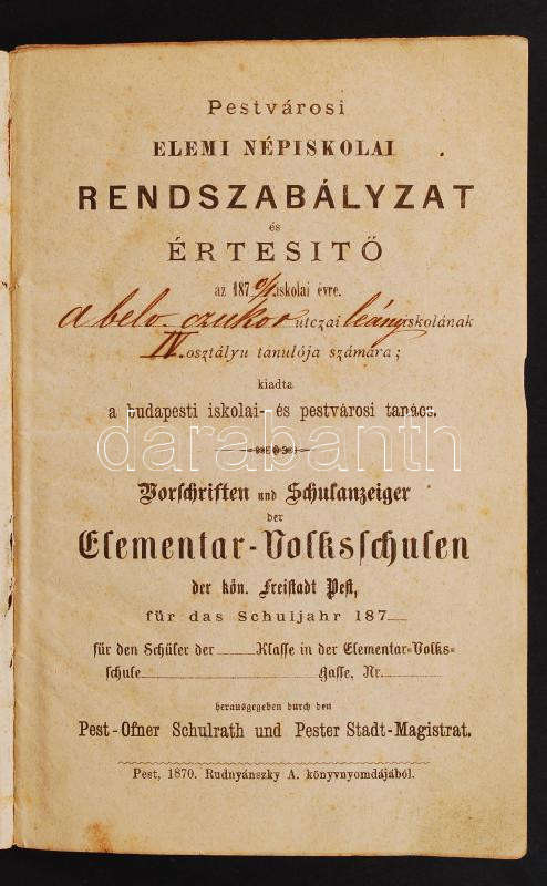 1870-1871 Pest, Pestvárosi elemi népiskolai rendszabályzat és értesítő https://www.darabanth.com/de/211-Fernauktion/211.0/Andere-Sammelgebiete/Dokument~400319/1870-1871-Pest-Pestvarosi-elemi-nepiskolai-rendszabalyzat-es-ertesito~II872803