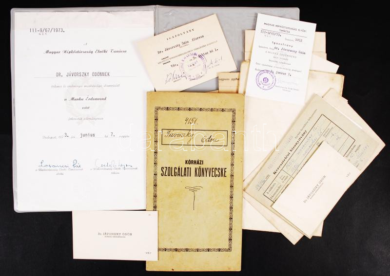 1927-1973 Jávorszky Ödön (1906-1975) orvos okmányhagyatéka (szolgálati... https://www.darabanth.com/de/211-Fernauktion/211.0/Andere-Sammelgebiete/Dokument~400319/1927-1973-Javorszky-Odon-1906-1975-orvos-okmanyhagyateka-szolgalati-konyvecske-igazolvan~II847684