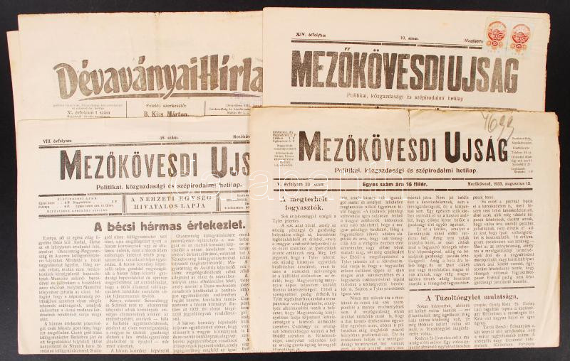 1898-1943 10 db regionális újság (Mezőkövesd és Vidéke, Mezőkövesdi Új... https://www.darabanth.com/de/211-Fernauktion/211.0/Andere-Sammelgebiete/Drucksachen~400330/1898-1943-10-db-regionalis-ujsag-Mezokovesd-es-Videke-Mezokovesdi-Ujsag-Devavanyai-H~II872980