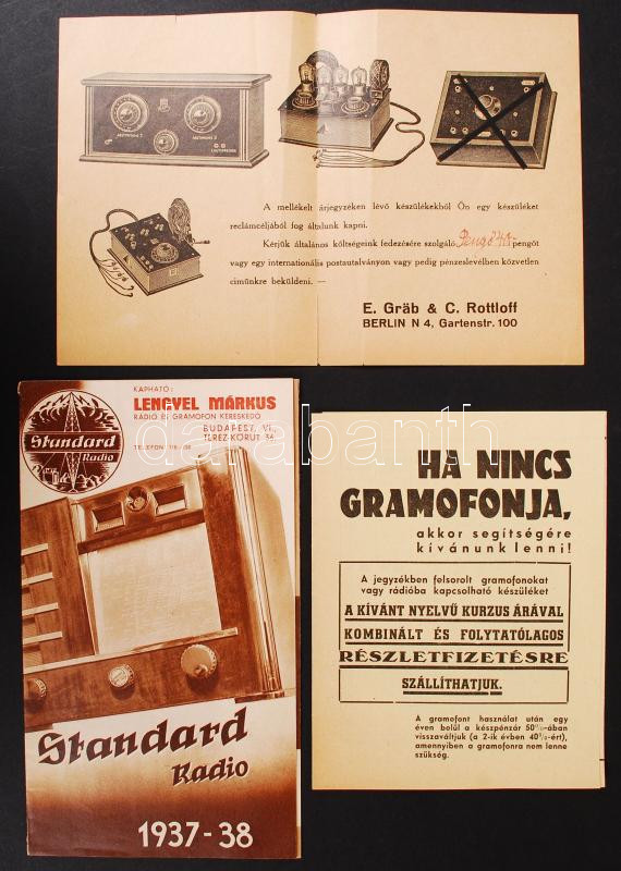 1937-1938 Standard rádió és gramofon szórólapja, és 2 db rádió és gram... https://www.darabanth.com/de/211-Fernauktion/211.0/Andere-Sammelgebiete/Drucksachen~400330/1937-1938-Standard-radio-es-gramofon-szorolapja-es-2-db-radio-es-gramofon-szorolap~II871594