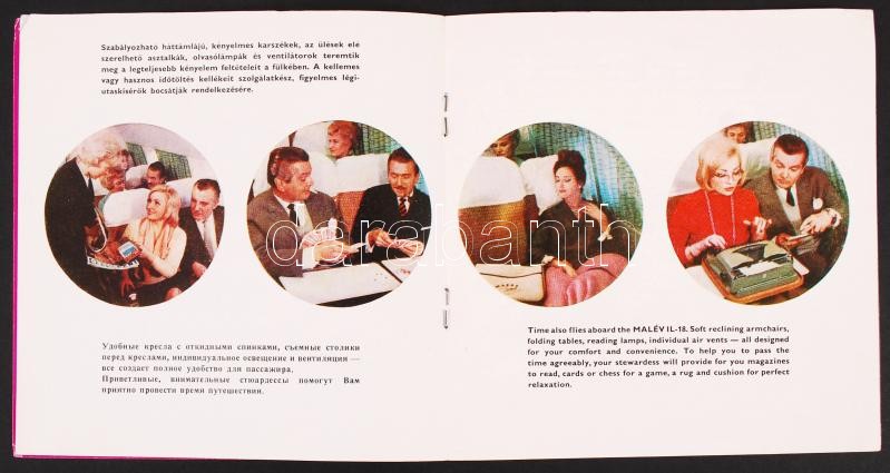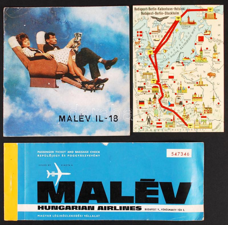 cca 1950-1960 Malév IL-18 prospektus, jegy és képeslap https://www.darabanth.com/de/211-Fernauktion/211.0/Andere-Sammelgebiete/Drucksachen~400330/cca-1950-1960-Malev-IL-18-prospektus-jegy-es-kepeslap~II871632