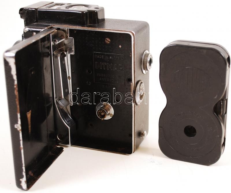cca 1930 Ditmar márkájú filmfelvevő bőr tokban /