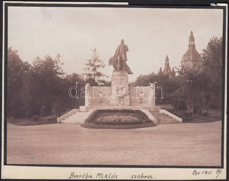 1915 Kerny István (1879-1963): Budapest, Bartha Miklós szobra (a fotós két kislányával), jelzetlen, feliratozott vintage fotó a szerző hagyatékából, 8x10 cm