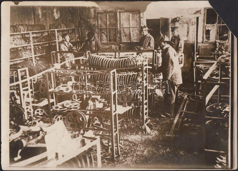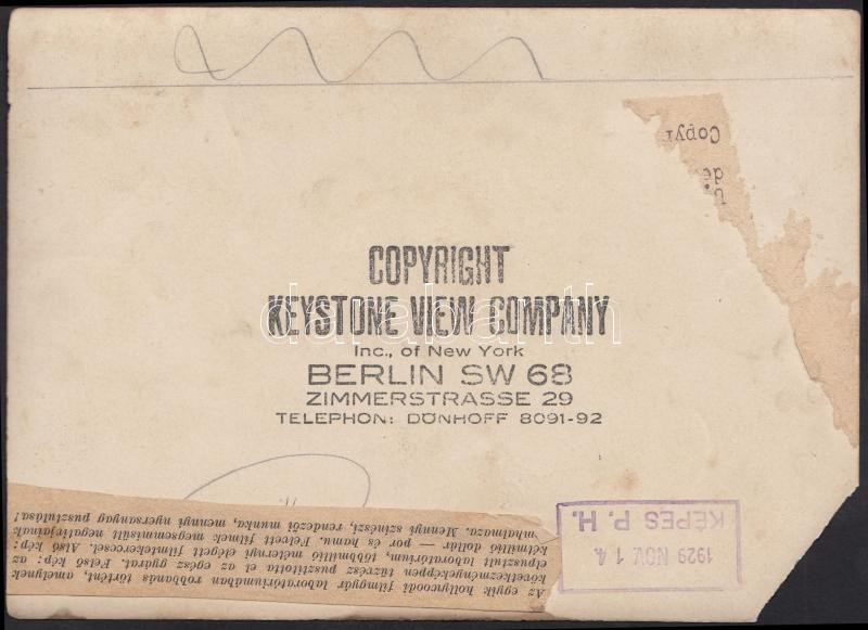 1929 Keystone: Az egyik hollywoodi filmgyár laboratóriuma kigyulladt és minden filmtekercs elégett, sajtófotó magyarul feliratozva, sarka hiányzik, publikálva a Képes Pesti Hírlapban, 13x18 cm