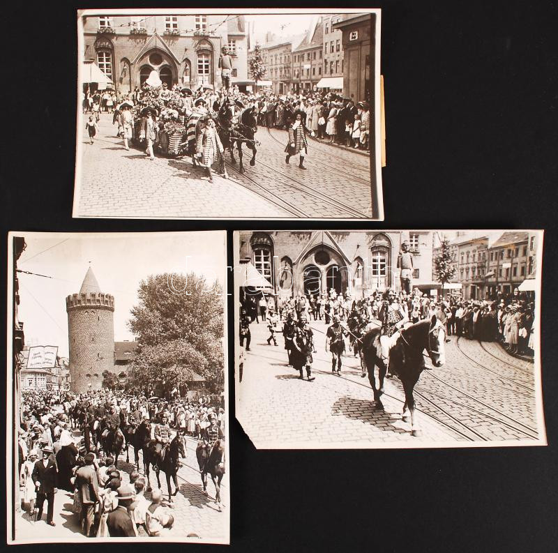 Beschreibung: 1931. június 29. Brandenburg 500 éves ünneplése, képriport a résztvevőkről, 3 db fotó, az egyik sarka hiányzik, németül feliratozva, 13x18 cm